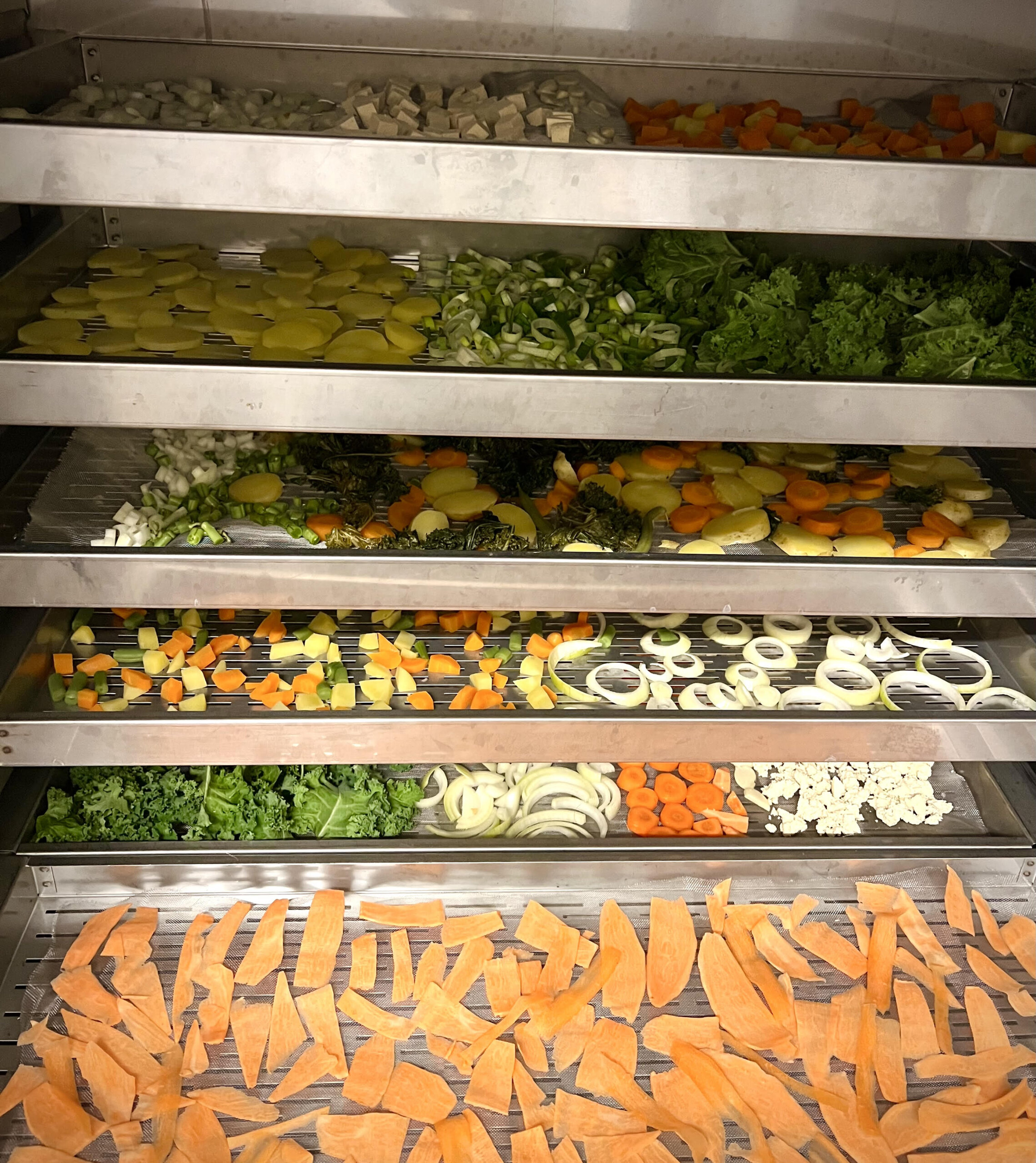 Aloitimme valmistelut myös tulevaan syysvaellukseen Ahvenanmaalla. Suunnittelimme retkiaterian, pilkoimme ainekset ja kuivasimme ne tehokkailla kuivureilla höyhenenkevyeksi. Ens alkuun pohdin että onpas tässä vaivaa, miksi ei vaan valmiita juttuja mukaan… mutta, mutta, lamppu syttyikin sitten myöhemmin. Teimme nimittäin yhdenyön retken koulun lähimaastoon. Valmistauduin retkeen pakkaamalla rinkkaani teltan, makuualustan ja makuupussini, lakanoineen, herkkuineen päivineen. Ja kylläpä se olikin painava! Hoksasin, että kilpailemme siis painottomuutta vastaan. Jokainen gramma merkitsee, kun taivallat rinkkasi kanssa matkaa.