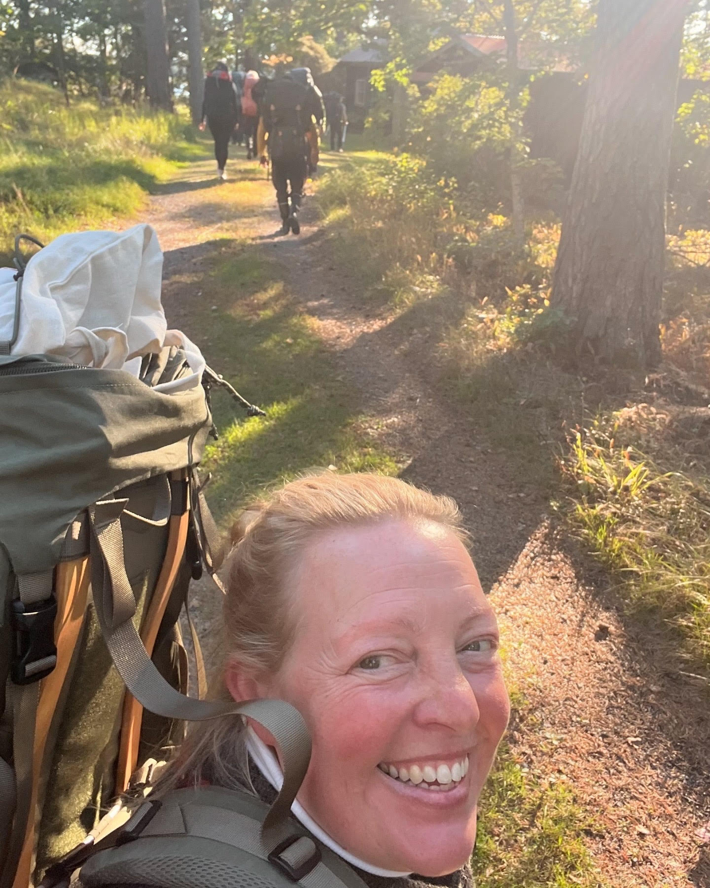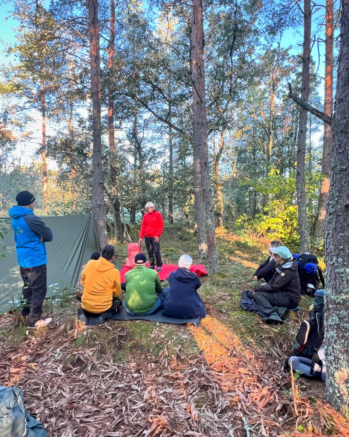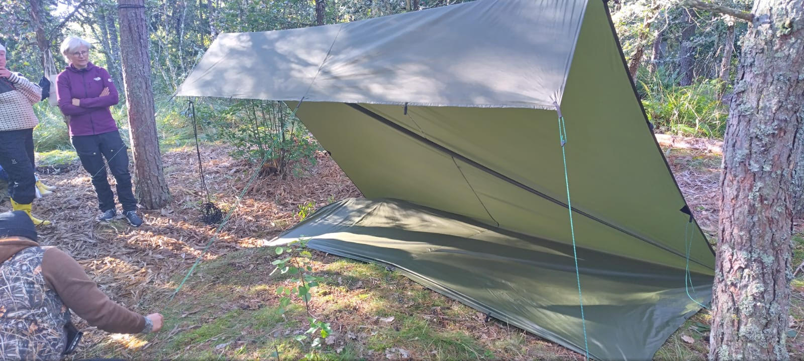 Aamu valkeni raikkaana ja kosteana. Aamiaisen nautin teltassani, kun naapurini tarjoili termariini kuumaa vettä, aika ylellistä. Tästä minä tykkään. Sitten purettiin leiri, harjoiteltiin erilaisia tarppivirityksiä (tarppi on vettä pitävä kangaspressu, josta saa naruilla monenlaisia laavuja ja suojia), valmistettiin lounas ja tehtiin vielä suunnistusharjoitus. Lämmin syyspäivä helli meitä kun lähdimme kotimatkalle, tyytyväisin mielin, monta uutta koulukaveria rikkaampana. Kotiläksyksi saimme tehtävän treenata rinkan kanssa patikointia, erilaisia matkoja pikkuhiljaa painoa lisäten. ”Ei maratoonaritkan lähde matkaan kylmiltään.” – kaikui saatesanoiksi.