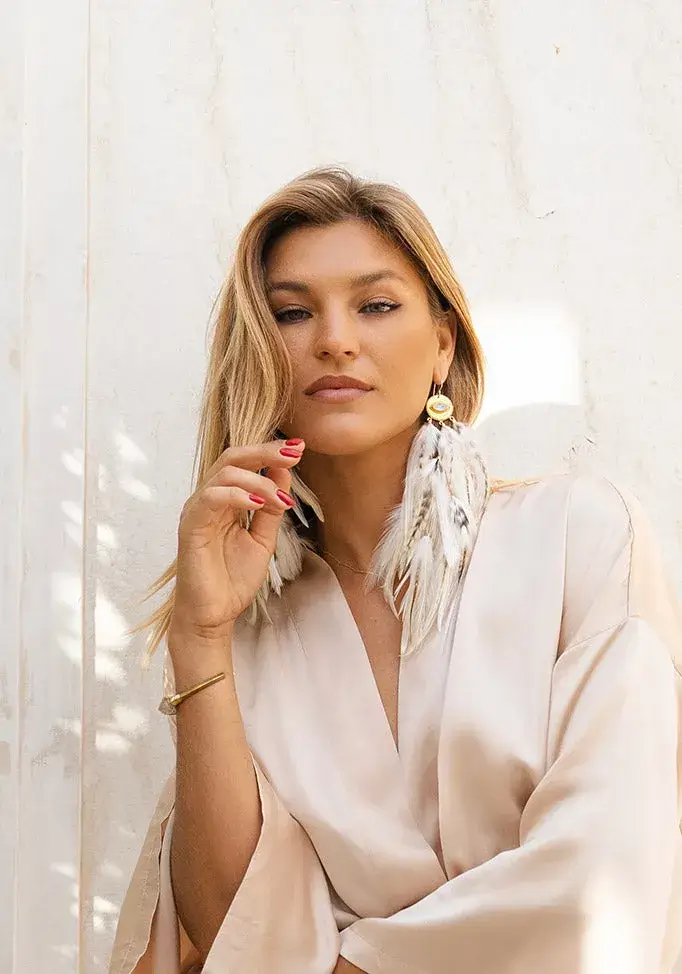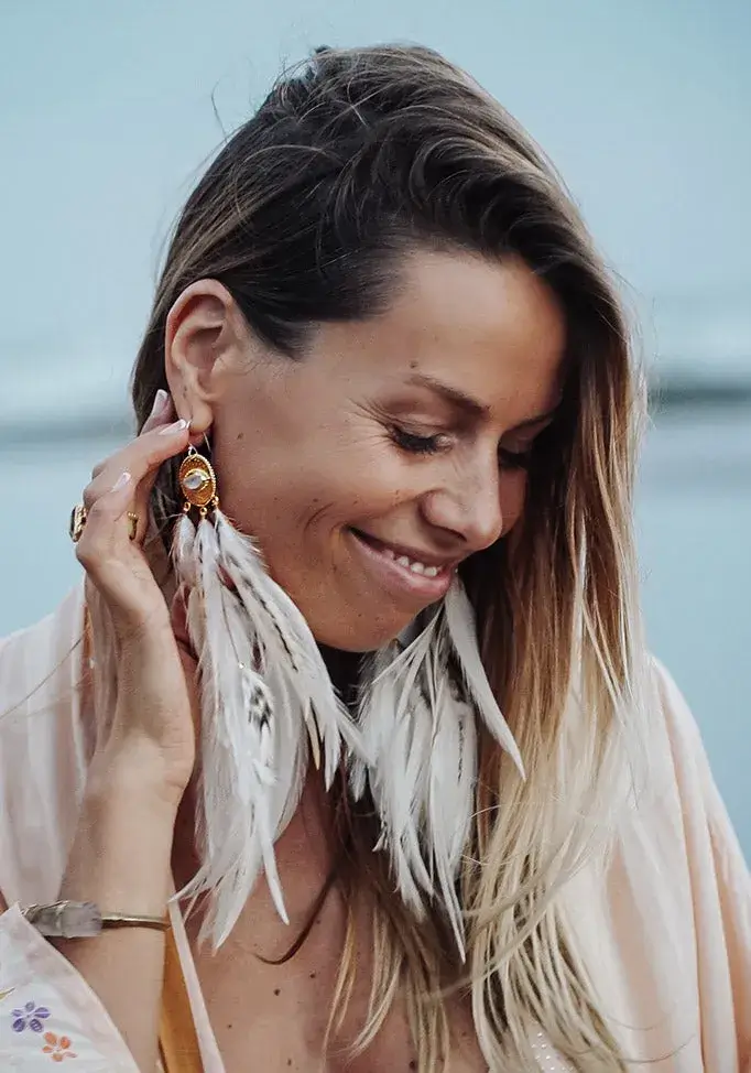 Kauniit höyhenkorvakorut saavat asusi loistamaan ja vapauttavat sinut ihanan boheemiksi.