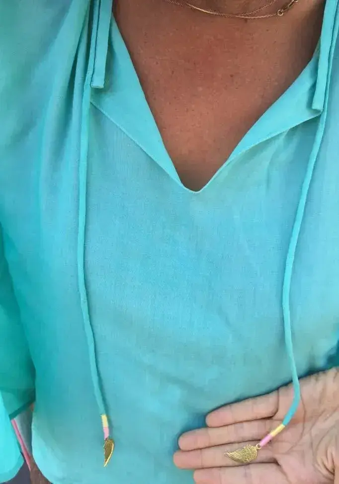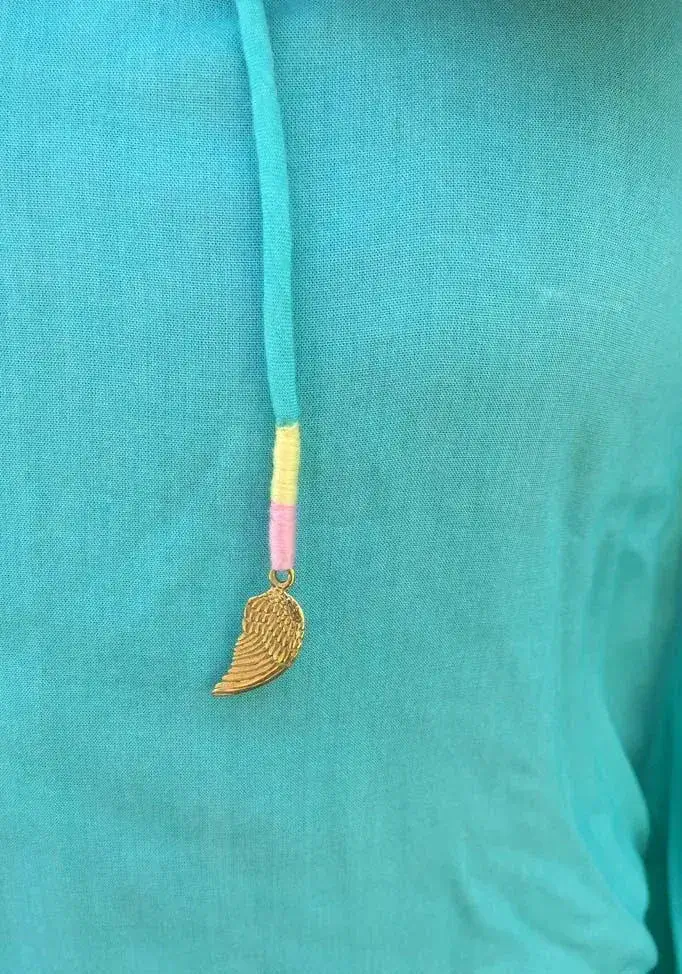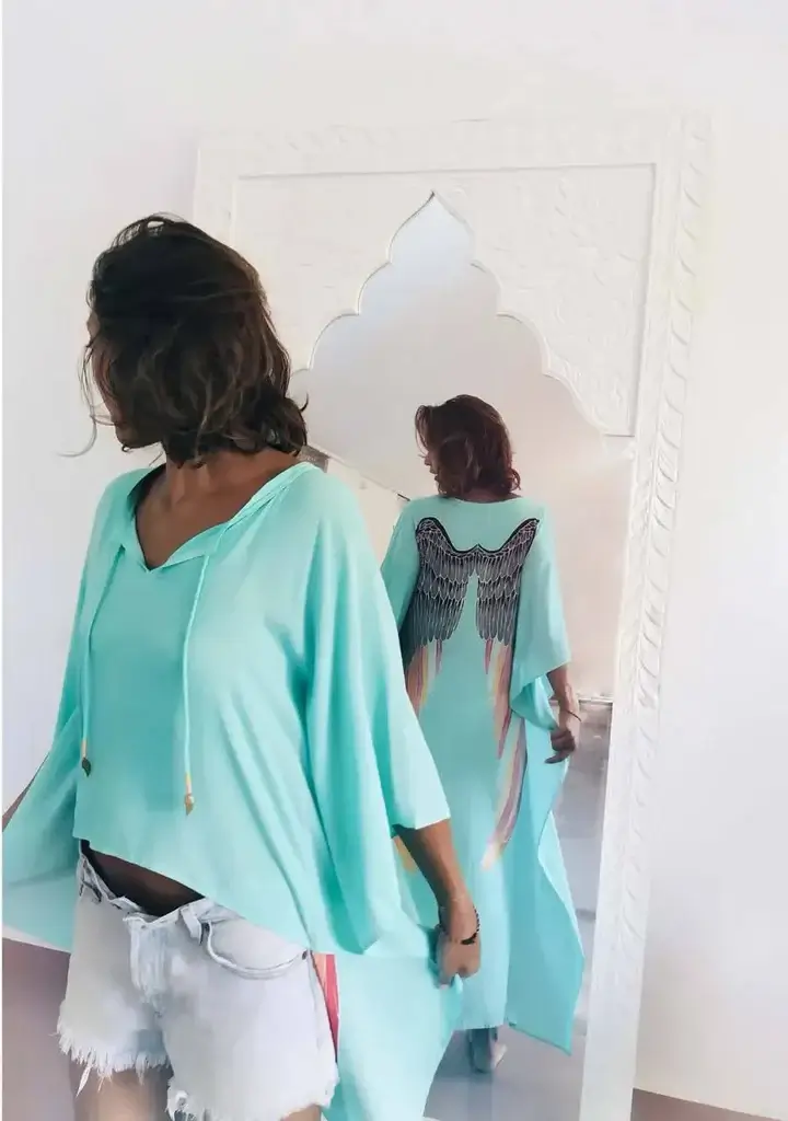 Warriors of the Divine – Short-Long Angel Wing Kaftan Viscose, Aqua with Silver Wings