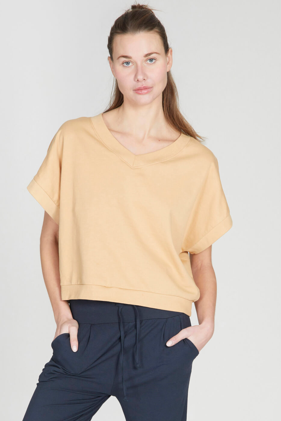 Kismet Yoga Sweatshirt – Joogapusero muhkeaa 100% luomupuuvillaa. Joogapusero Esha tuo lämpöä meditaatiossa tai ennen ja jälkeen joogaharjoituksen. Yoga Sweatshirt Esha täydentää mallistomme. Rento, täydellinen leikkaus, urheilullisella ilmeellä. Pusero on lyhyt ja kaunis.
